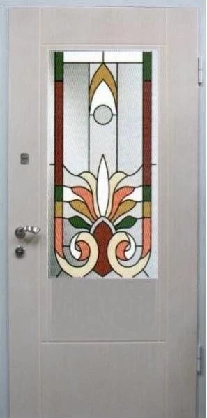 Входные двери в Лисках с применением декора витражом изготавливаются из стального профиля, придающего прочность конструкции, а сама витражная вставка обладает высокой взломостойкостью, поскольку для витражных композиций используется специальное стекло, обработанное особым образом. Усилить надежность витражного элемента можно с помощью использования декоративных кованных решеток.